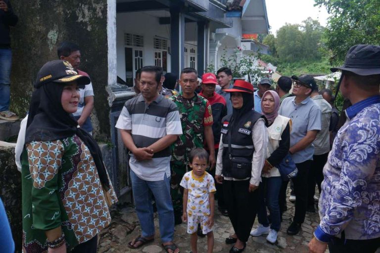 Walikota Bandar Lampung, Eva Dwiana meninjau lokasi rumah yang hancur terkena longsor pada Jum’at (21/2/2025) lalu yang mengakibatkan 2 orang tewas tertimpa reruntuhan di kelurahan Gedong Air, Gg. Kel...