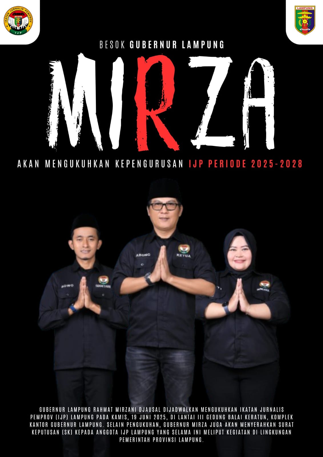 LAMPUNGSTREETNEWS, Bandar Lampung – Gubernur Lampung Rahmat Mirzani Djausal dijadwalkan akan mengukuhkan kepengurusan Ikatan Jurnalis Pemprov (IJP) Lampung periode 2025–2028 pada Kamis (19/6/2025), di lantai III Gedung Balai Keratun, Kompleks Kantor Gubernur Lampung.