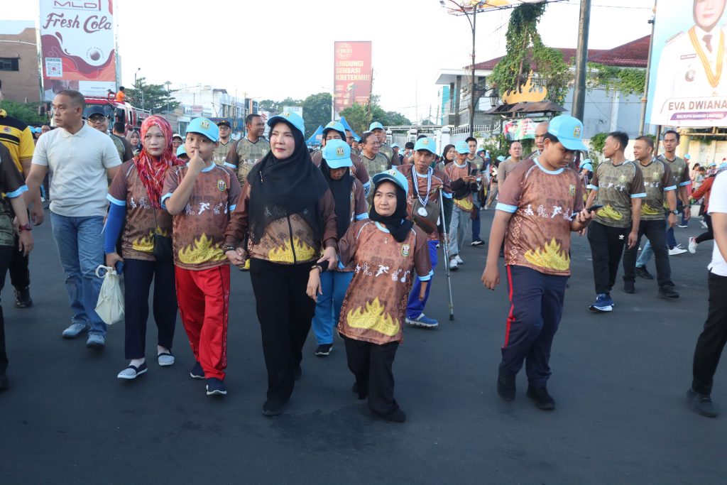 Pemerintah Kota (Pemkot) Bandar Lampung sukses menggelar Jalan Sehat dan Senam Disabilitas dalam Rangka HUT Kota Bandar Lampung yang ke-343 Tahun 2025, Minggu (18/5/2025). Acara berlangsung didepan UPT PLN Tanjung karang sampai di Tugu Adipura sebagai lokasi titik kumpul dan dibuka langsung oleh Walikota Bandar Lampung, Hj. Eva Dwiana beserta Gubernur Lampung, Rahmat Mirzani Djausal, S.T., M.M.
