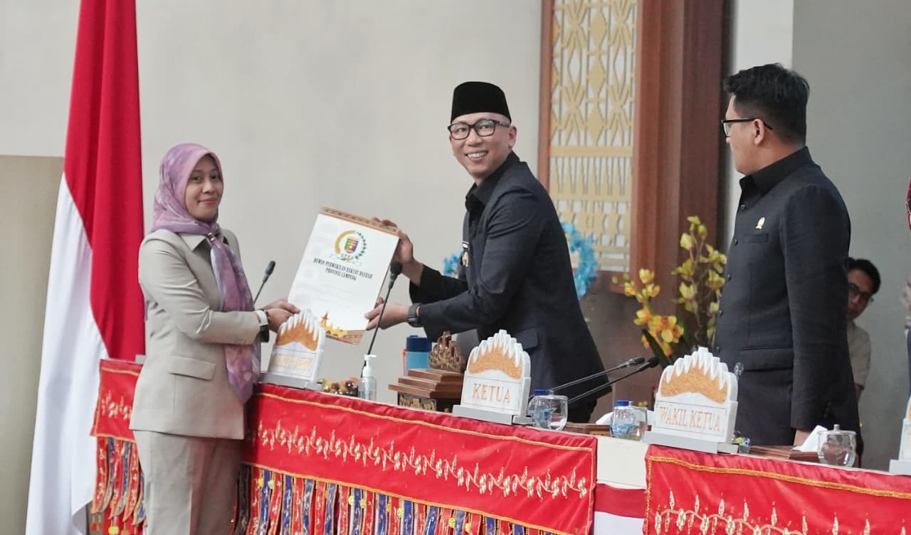 LAMPUNGSTREETNEWS, Bandar Lampung – Gubernur Lampung, Rahmat Mirzani Djausal menghadiri Rapat Paripurna DPRD Provinsi Lampung dengan agenda penyampaian Program Pembentukan Peraturan Daerah (Propemperda) Tahun 2026, Selasa (19/8/2025).