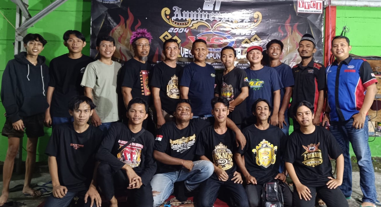 LAMPUNGSTREETNEWS, Bandar Lampung – Komunitas pengguna motor Yamaha Vega, Vega Lampung Club (VLC), genap berusia 21 tahun pada 30 Mei 2025. Didirikan pada 30 Mei 2004, VLC terus eksis di dunia otomotif Lampung dengan semangat kebersamaan dan solidaritas.